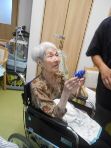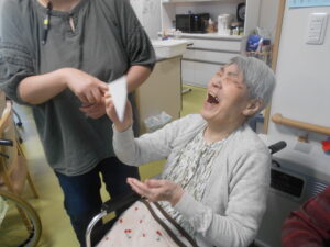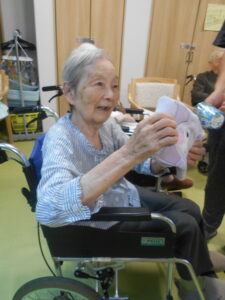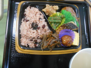 お昼ご飯は、お待ちかねの敬老会お弁当です。皆さんに喜んでいただけて完食されております。