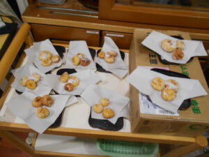みんなで生地を丸めます。おいしいからちょっと一口。かじって味見してみた方も
