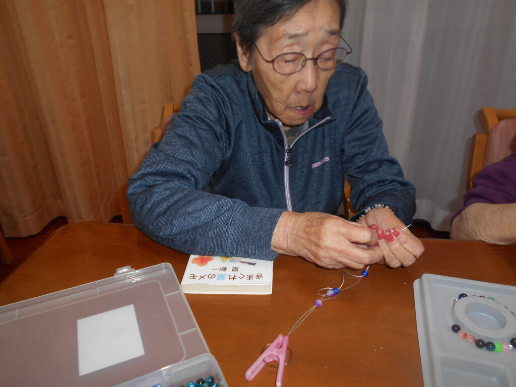 ビーズアクセサリーの制作の様子をお伝え致します。ではどうぞ。