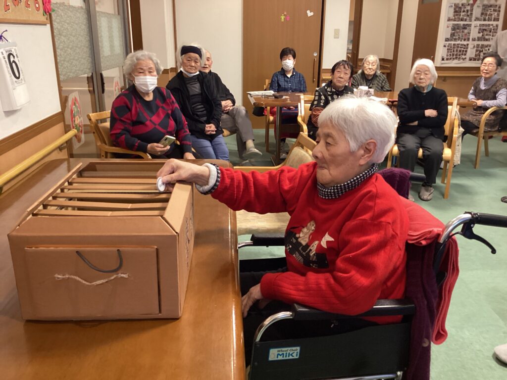 午後はすけるん家神社のお賽銭箱に好きなだけお賽銭(厚紙で作った模擬コイン)を入れていただきました。