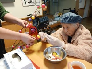 新年会では的あてゲームをしユニット毎で得点を競いました。マスコットキャラクター「りんりん」